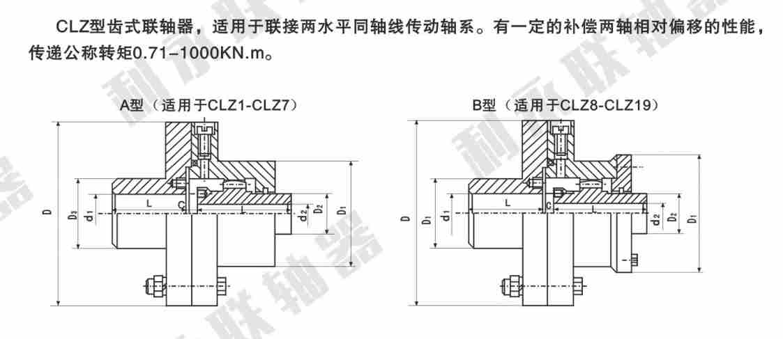 CLZ型齒式聯(lián)軸器具有徑向、軸向和角向等軸線偏差補償能力,具有結(jié)構(gòu)緊湊、回轉(zhuǎn)半徑小、承載能力大、傳動效率高、噪聲低及維修周期長等優(yōu)點。